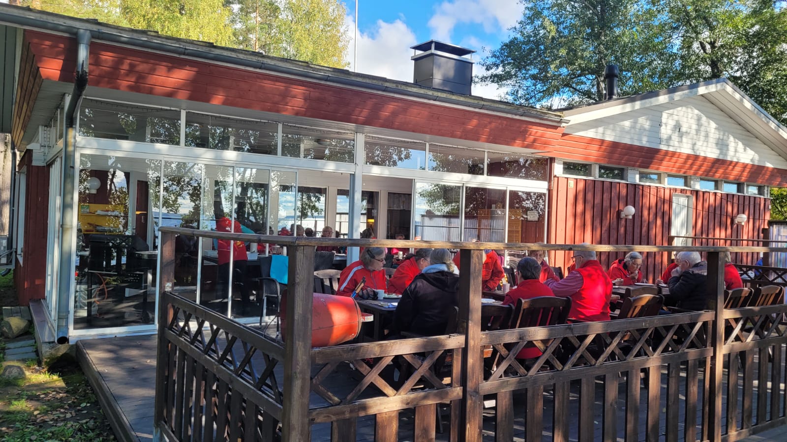 Makkara, salaatti ja Kukkosen Reijon tekemät viinerit maistuivat kahvin kera. Kova puheensorina täytti terassit ja sisätilat. ”Muistatko” korteilla heräteltiin muistia ja löytyihän sitä. Nauru raikui kun Kukkosen pariskunta sekä puheenjohtajamme Jokitalon Pekka esittivät hauskoja tarinoita. Arpajaiset pidettiin hyväksi havaitun tavan mukaa, jonka jälkeen voittajat ja kaikki muutkin mukana olleet lähtivät silminnähden tyytyväisinä kotiin. Hienosti saatiin jälleen yhteistyöllä hoidettua tämäkin tapahtuma.