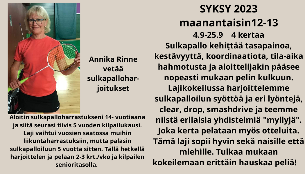 Yhteydenotot ja tiedustelut: Sirpa Tuominen, puh. 041 522 9023 tai sirpa.tuominen@live.fi