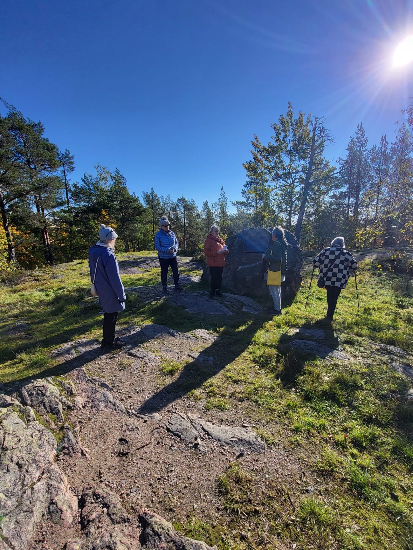 Perjantaina 4.10.2024 jatkoimme postinumerobongausta kauniina syksyisenä ulkoilupäiväna. ☀️🍂Tapasimme klo 12.00 Henrikintien bussipysäkillä Pitäjänmäentien ja Henrikintien risteyksessä. Lähdimme kävelemään kohti Kyläkirkkoa. Pääsimme tutustumaan Mäkkylän metsän sodanajan paikkoihin ja kuulimme mielenkiintoisia juttuja Mäkkylän metsän tapahtumista. Historiaa sodan ajoilta ja romaanien leiripaikoista. Luonto oli kaunista ja alue meille muille tuntematon. Kävimme myös kylässä Atomin kodissa ja joimme kahvit Kotikallion kahvilassa.