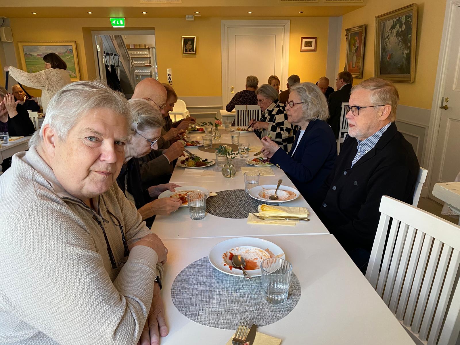 Helsingin Sydänkuntoutus ry:n Pieni ele vaalikeräyksiin vuosina 2023-24 osallistuneet vapaaehtoiset kerääjät nauttivat yhdessä lounasta Puotilan kartanossa. Meitä oli lähes kolmisenkymmentä paikalla.