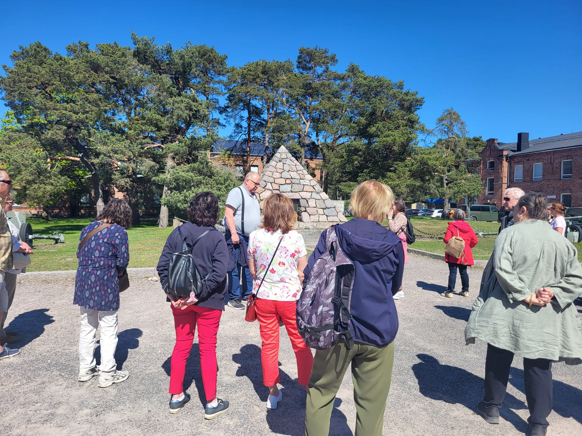 Tällä kertaa saimme nauttia aurinkoisesta Santahaminan vierailusta. Pätevät ja mukavat oppaamme kierrättivät meitä nähtävyydeltä toiselle ja saimme kuulla runsaasti saaren historiaa. Näimme monenlaista; Lemmenlaaksosta, kilpikaarnaisten mäntyjen siimeksessä … Saharaan.
