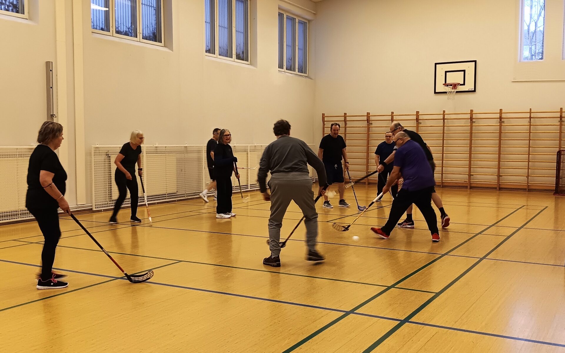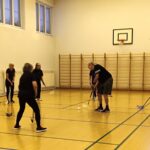 Tiistaisin kello 10-11 tapaamme kävelysählyn merkeissä Sydäntalolla Oltermannintie 8:ssa. Ohessa muutamia kuvia lämmittelystä. Kävelysähly ei rasita niveliä yhtä paljon kuin sähly, koska siinä ei saa juosta. Tunnit kuluvat nopeasti hauskassa seurassa. Yhdistys on hankkinut mailat pelaajille.