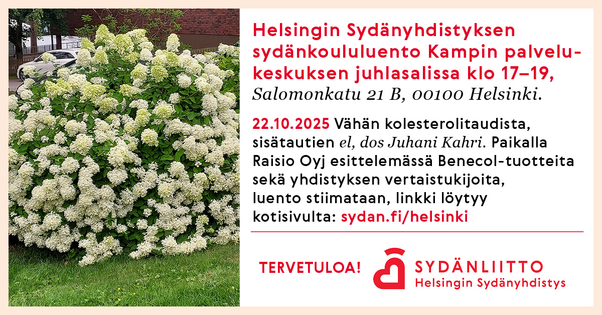 Yhdistyksen tapahtumakalenterista voitte seurata muita tapahtumiamme osoitteesta sydan.fi/helsinki