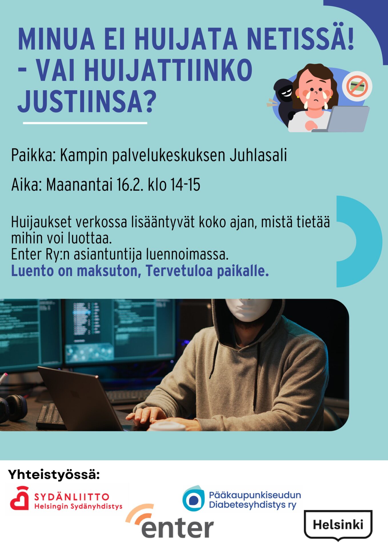 Liity jäseneksiTule kuuntelemaan ja opit välttämään nettihuijarit!