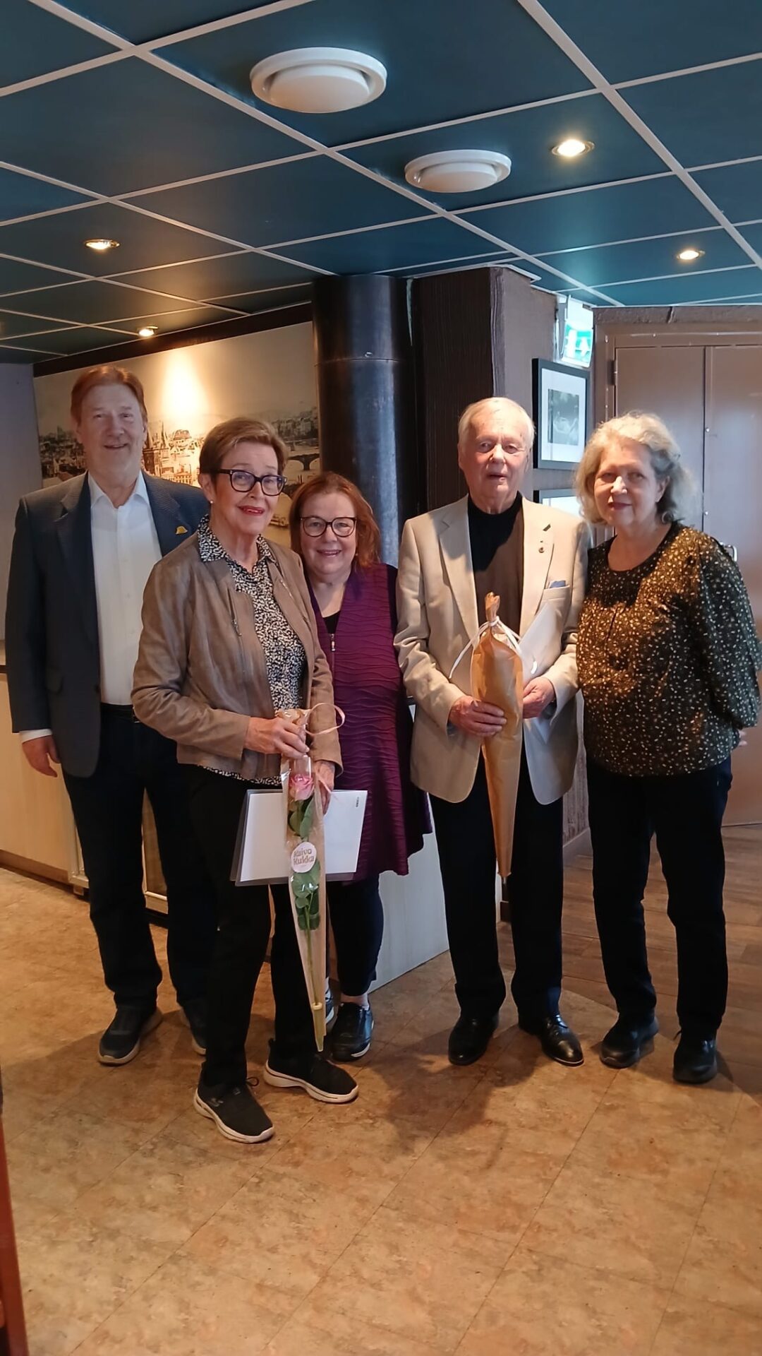 Paikalle oli hallituksen lisäksi kutsuttu Tuula Huovinen ja Tapio Parkkari, jotka yhdistys on kutsunut kunniajäseniksi. Tuula on toiminut yhdistyksen hallituksessa ja järjestää suuren suosion saaneita bongaustapahtumia. Tapio puolestaan on toiminut vuosia yhdistyksessä vertaistukijana Meilahden sairaalan osastolla 10.