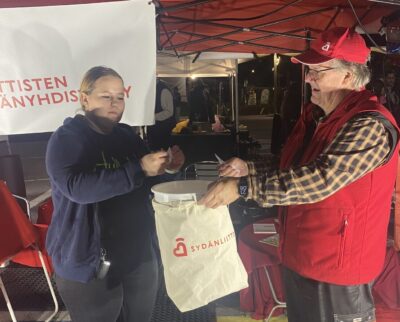 Sydänyhdistyksen Hullun Yön esittelypiste oli suurmenestys. Kävijöitä pisteellä oli kolmisen sataa. Osallistujien kesken arvoimme kahvipaketteja. Kaksi jäi Huittisiin, kaksi pakettia matkasivat Oripäähän ja Säkylään.