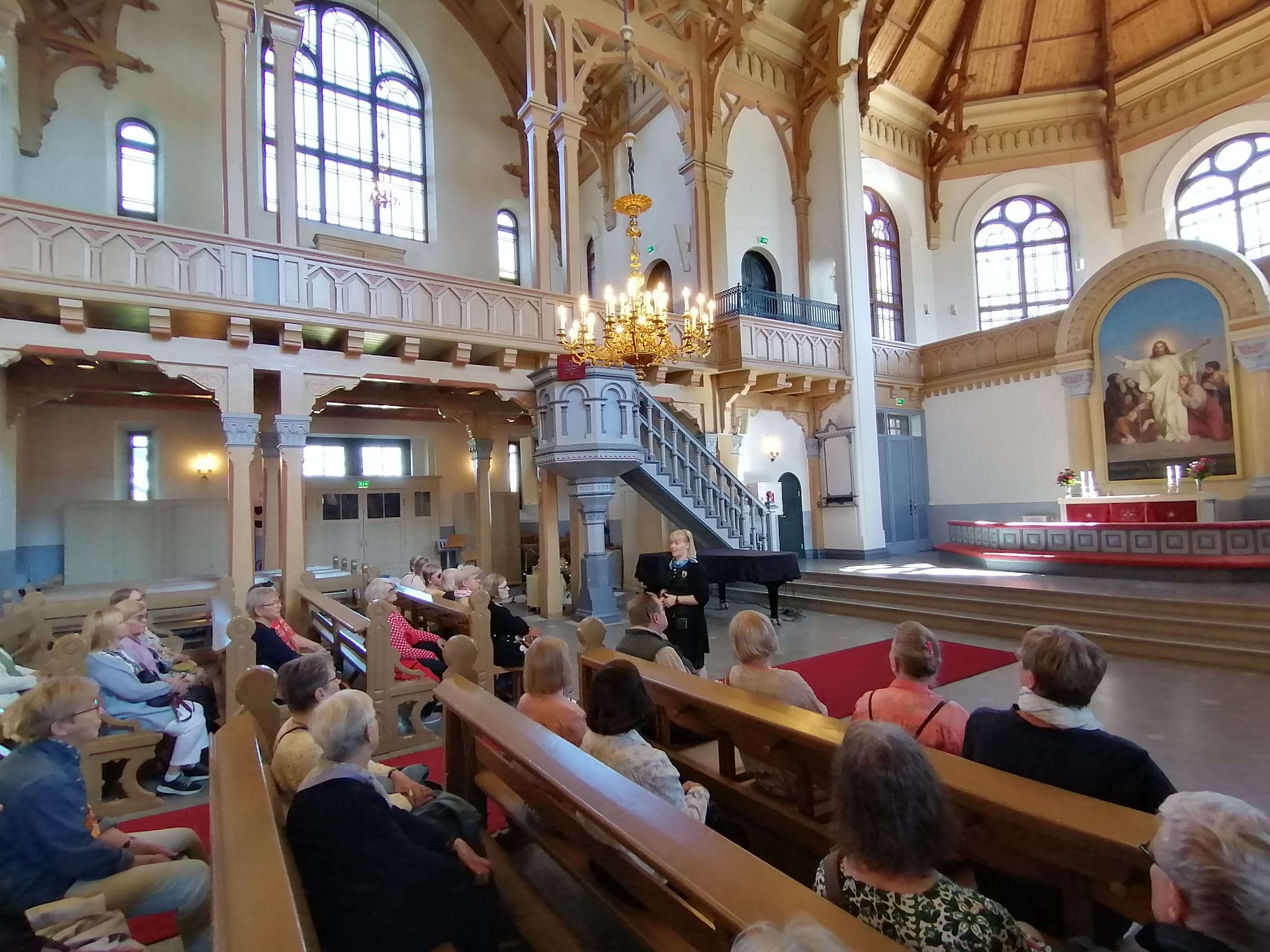 Kauniina keväisenä aamuna odotti iloinen ryhmä varttuneen ikäisiä ihmisiä Järvenpään Sydänyhdistyksen järjestämää kevätretkeä Sipoon maisemiin. Retkivastaava Pirkko Lehmusvirpi oli vastaanottamassa osallistujia. Lyhyehkön linja-automatkan jälkeen ensimmäinen kohde oli Sipoon v. 1450 rakennettu harmaakivikirkko, jonka askeettinen sisustus muistutti keskiajan köyhästä elintasosta ja ankarasta uskonnollisesta elämästä. Seuraava kohde oli muutaman sadan metrin päässä oleva v. 1885 valmistunut uusi kirkko, jonka punatiilinen goottilaistyyli poikkesi tyystin vanhan kirkon vaatimattomuudesta. Oppaamme Elisabet Lundströmin kerrottua kirkon historiasta siirryimme v. 1914 käyttöönotetun ja v. 1999 lopetetun Nikkilän psykiatrisen sairaalan alueelle. Oppaamme vei meidät paikallisten taiteilijoiden työtiloihin, jossa tutustuimme heidän töihinsä. Sitten kiertelimme sairaalan miljöössä tutustumassa eri rakennuksiin keväisen kukkaloiston ympäröiminä. Kuulimme rakennusten historiasta ja siellä potilaina olleista nimekkäistä henkilöistä. Nykyään sairaala-aluetta kutsutaan Itäiseksi Jokipuistoksi. Vanhoja rakennuksia on kunnostettu muun muassa asuinkäyttöön. Paikallisessa ravintolassa Sapori D`italiassa nautitun lounaan jälkeen ajoimme Konst&Form-taidenäyttelyyn Gumbostrandiin. Ostokset ja kahvit nautimme idyllisessä kahvila.N`avetassa Västerskogissa. Seurueemme kokemusrikas päivä läheni päätöstään ja kotimatkalle lähdimme noin klo 17. Hyvästelimme paikallisen oppaamme, hänen poistuessaan kyydistä kirkon luona, onnistuneesta retkestä kiittäen. Suuret kiitokset kuuluvat myös retkivastaavalle Pirkolle ja bussin kuljettajalle Mikalle turvallisesta matkasta.