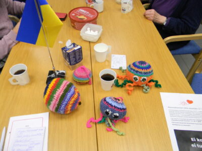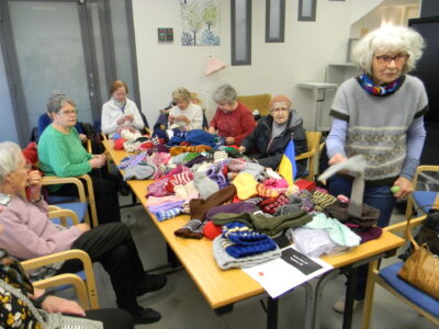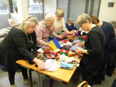 Maailman tilanteen huomioiden kerho on myös auttanut Ukrainan lapsia ja sotilaita, viemällä heille myös vaatetavaraa ja erinäisiä määriä kudottuja sukkapareja. Lähitorilla tavatessamme Ukraina talon yhdyshenkilö Raija Rantala haki 152 paria kudottua villatuotetta. Lähetys menee Ukrainaan koululaisille, jossa opetus tapahtuu usein kellaritiloissa ja maan alla betonilattioilla sekä sotilaille myös naisille ja miehille saapassukkia.