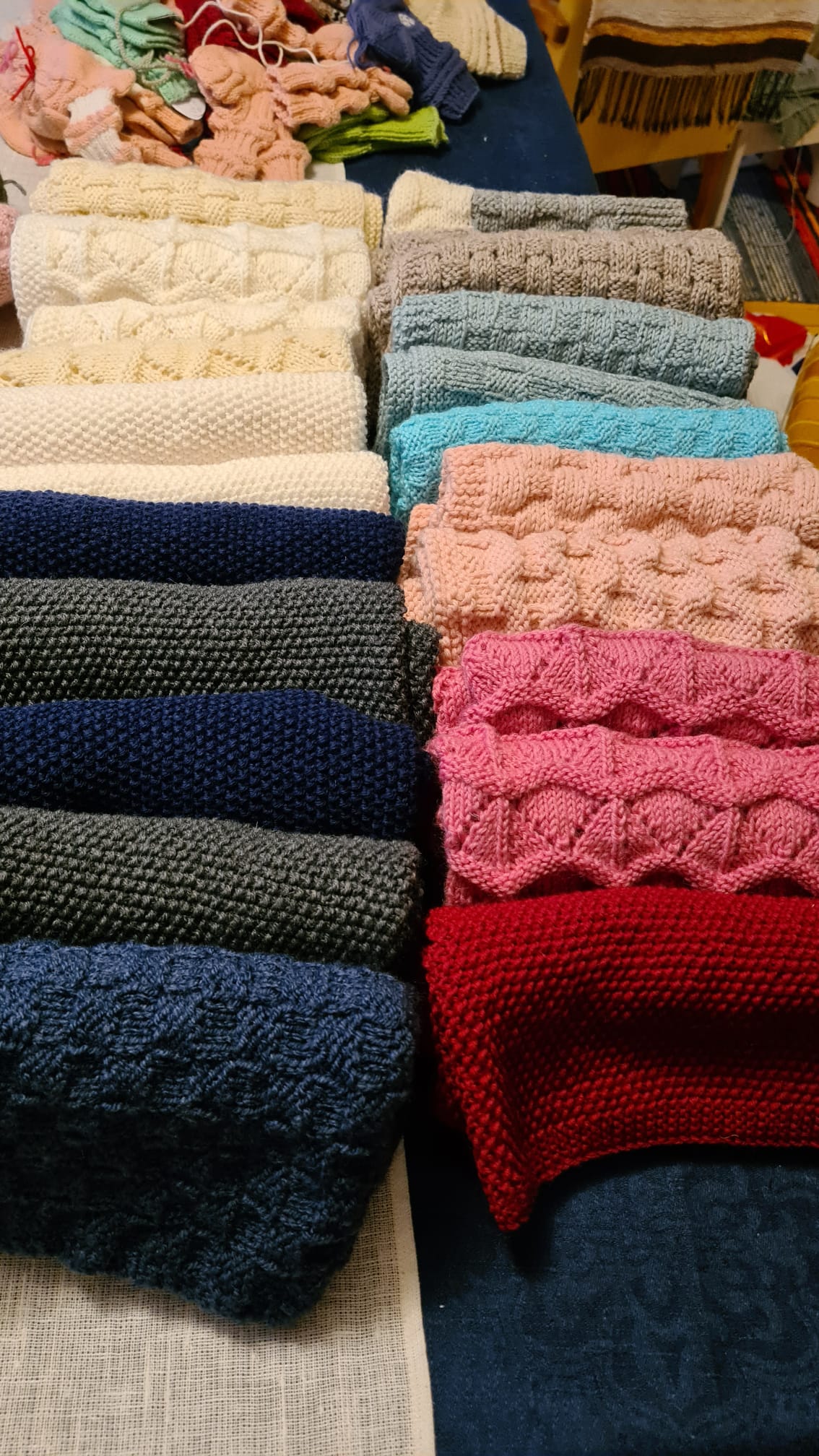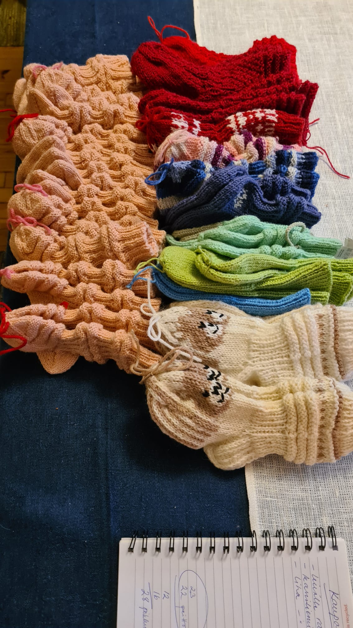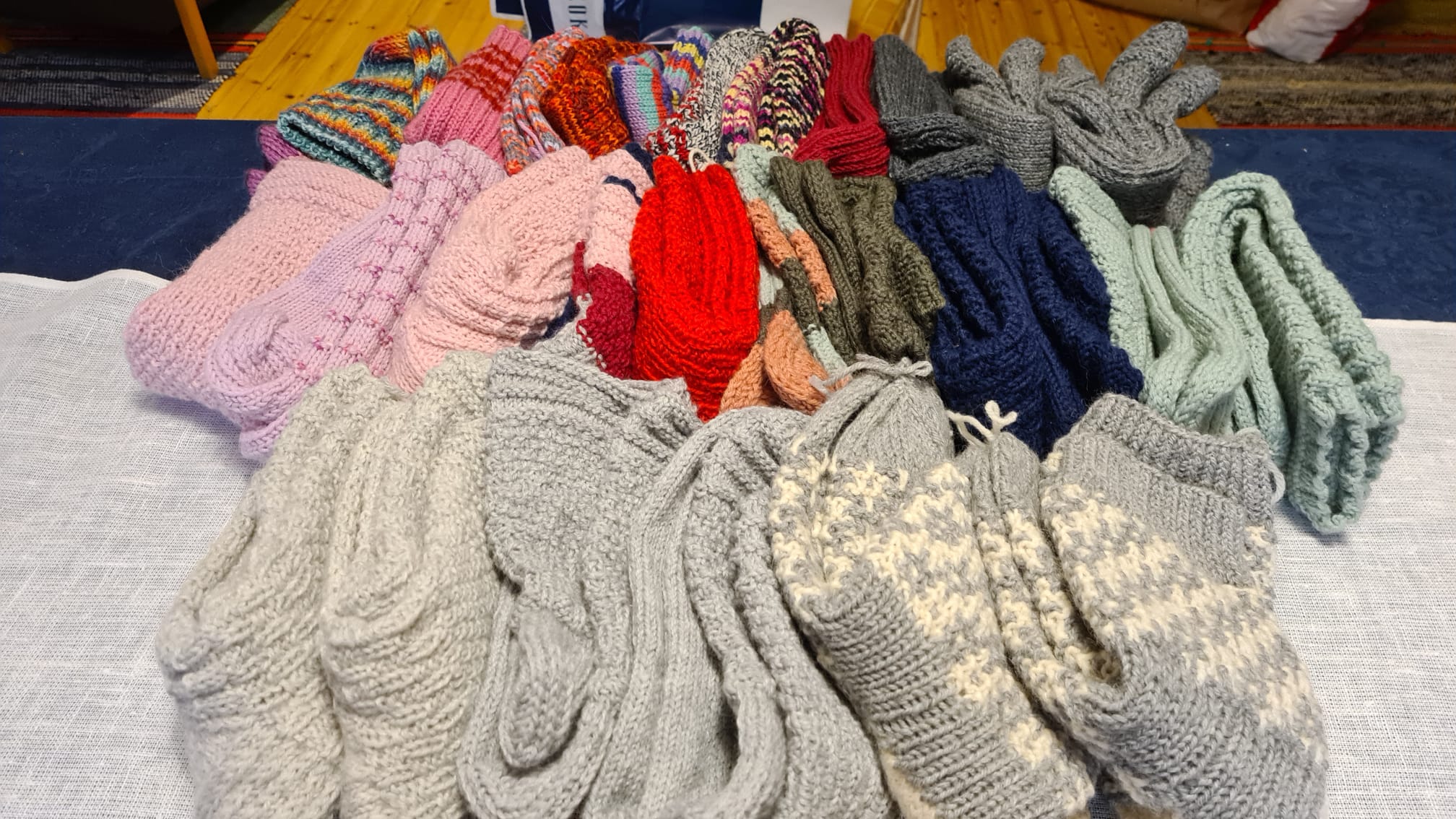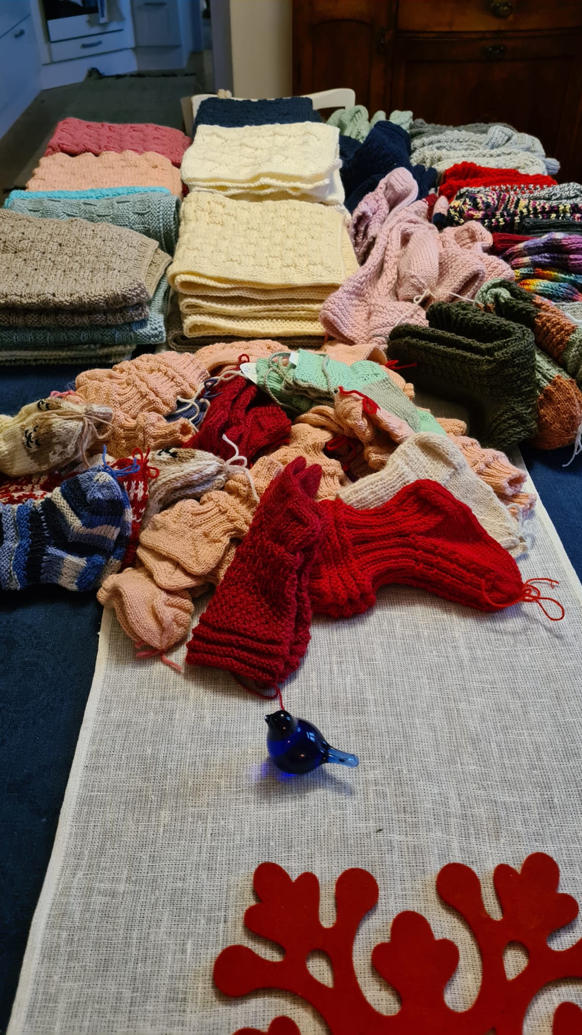 Lahjoitimme joulun 2025 alla Neulotaan ja nautitaan -kerhon valmistamia tuotteita keskussairaalalle: 40 paria sukkia syöpäosastolle, 23 paria pikkusukkia vastasyntyneille ja 23 vauvanpeittoa. ![]()