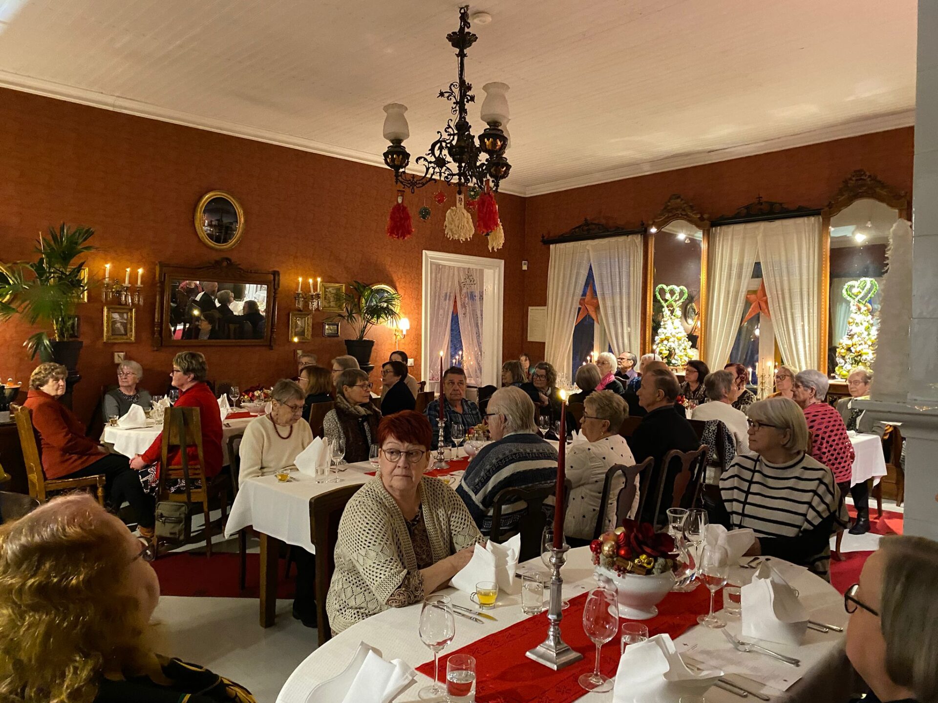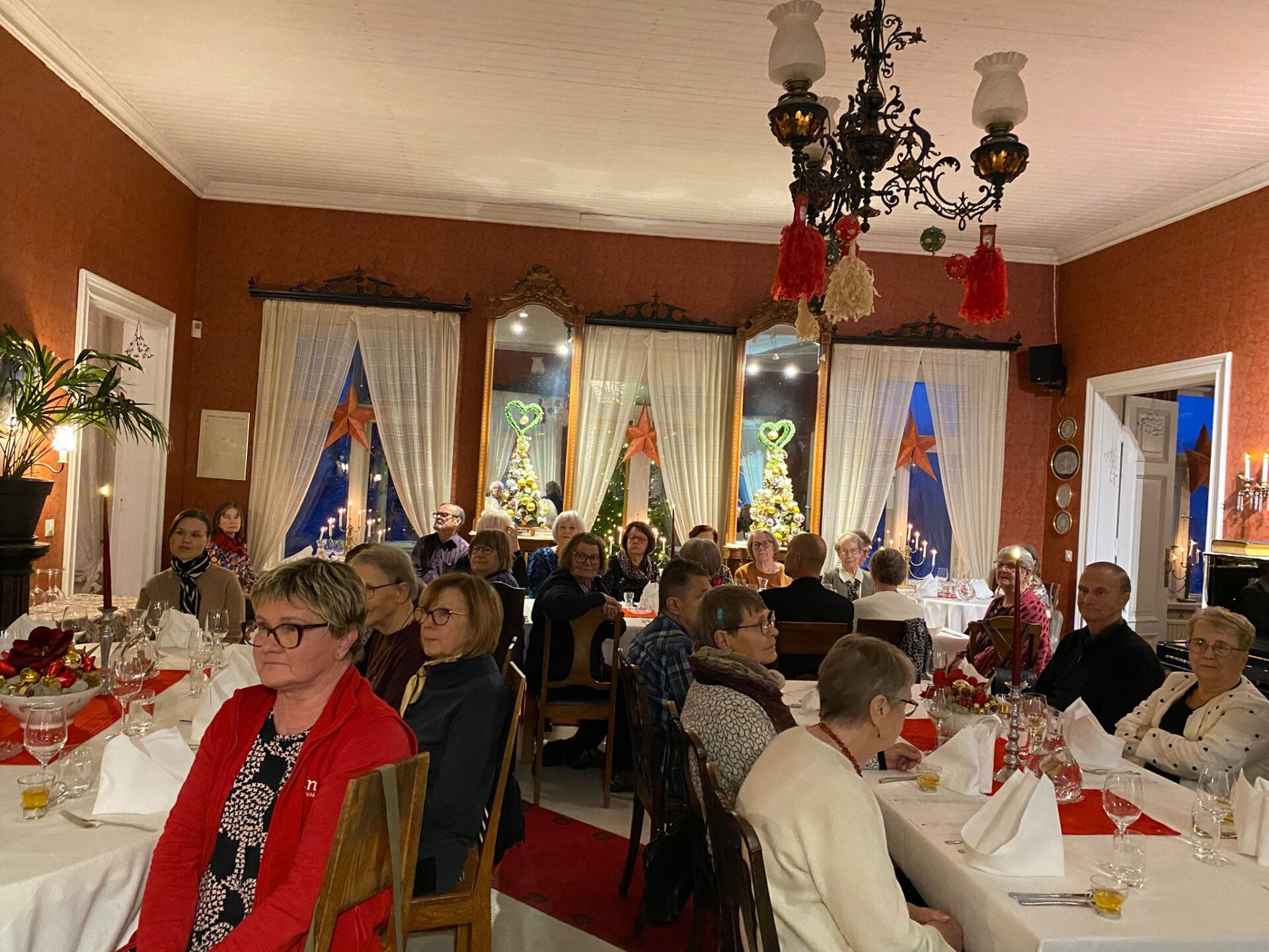 Teimme pikkujouluretken Tertin Kartanoon perjantaina 21.11. Saapuessamme kartanon pihalle tunnelma oli jouluinen ja hyvin rauhallinen, toivotti meidät tervetulleeksi. Tervetuliasmaljan toivotuksin saimme kuulla kartanon historiaa. Kyseltiin myös kummituksista. Seuraavaksi meitä odotti yli 50 ruokalajia herkkuja. Ruokailun jälkeen siirryimme myymälään jossa oli myynnissä niitä herkkuja joita söimme herkkupöydästä. Myymälässä oli kiva pöhinä, ostoksia tehden. Ostoksien jälkeen aloitimme kotimatkan. Kaikki oli tyytyväisiä ja kiitoksia tuli järjestäjille paljon. Kotimatka sujui bussissa puheensorina ja naurunpyrähdyksillä. Seuraavaa reissua odotellen.