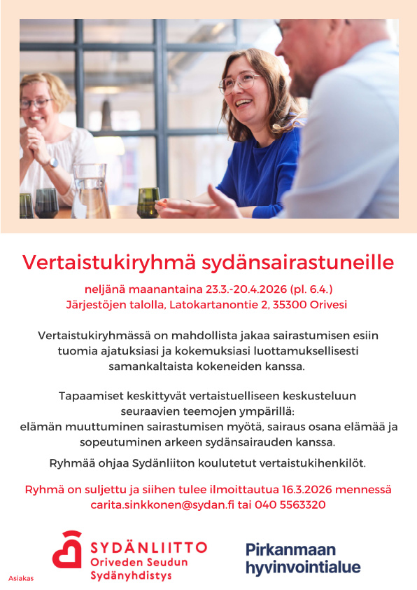 Vertaistukiryhmä sydänsairastuneille keväällä 2026