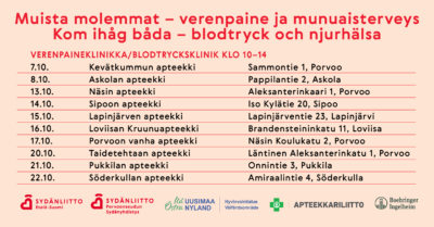 Tapahtumakalenterista löydät yhdistyksemme sekä alueemme sydänpiirin tulevat tapahtumat. Tapahtumakalenterin lopussa olevasta linkistä pääset katsomaan myös kaikki sydänyhteisön tapahtumat. Tutustu tapahtumiin ja lähde mukaan!